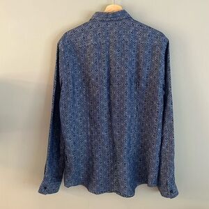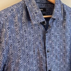 Hugo Boss Geometric 100% Linen Button Down Shirt Large