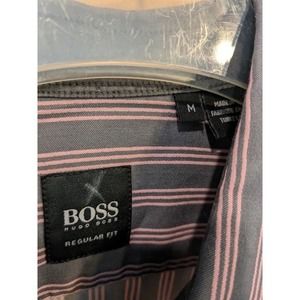 Hugo Boss Gray Pink Stripe Sharp Fit Long Sleeve Button Shirt MENS SZ Medium