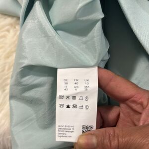 This Hugo Boss pencil skirt in a sophisticated green hue is designed for both work and cocktail occasions. Its knee-length cut and tailored silhouette offer a polished and professional look, making it a versatile wardrobe staple.size 6 good condition smoke free home