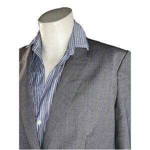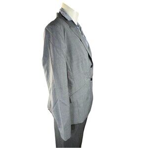 The product is a HUGO BOSS grey wool blend women's size 14 business blazer. This stylish suit jacket is designed for professional occasions with a sleek and sophisticated style. Made from a high-quality wool blend, this blazer offers both comfort and elegance for the modern woman in a business setting.