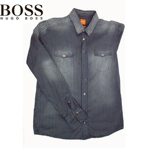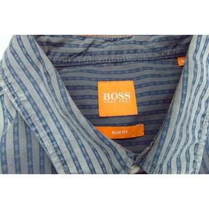 Hugo Boss Grey and Blue Dress Shirt Large Slim Fit