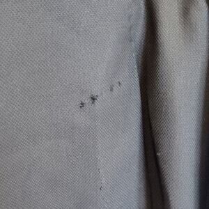 Great condition, there is a small tear near the pocket on the inside of the jacket, and some thread coming up in the back of the jacket (pictured)