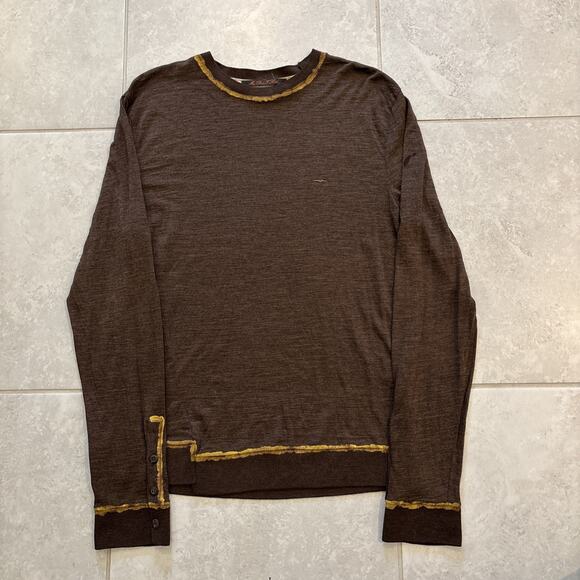 Hugo Boss Handcrafted Wool/Silk Brown Sweater Men’s Sz XL Pullover Knit Flaw*