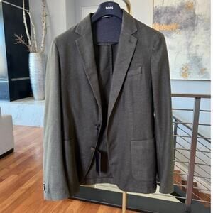 This NWT Hugo Boss Hanry Slim Fit Wool Blend Blazer features notched lapels and deep patch pockets that accent the front of this versatile sport coat cut in a modern, slim fit.