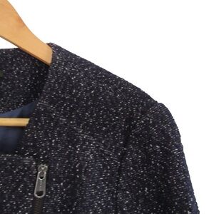 Hugo Boss Klera Tweed Jacket Size 10 Asymmetrical Zip Navy Blue Virgin Wool