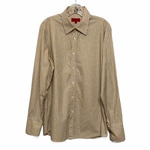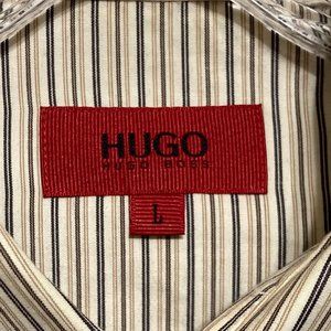 Hugo Boss Large Men's Beige Pinstriped Long Sleeve Button Down Shirt