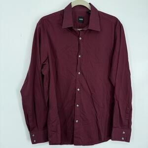 Hugo Boss Lex Button Up Shirt Mens Size Large Burgundy Cotton Long Sleeve