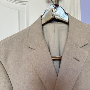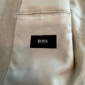 Hugo Boss linen blazer from Saks Fifth Avenue. Size 40R. 100% linen. Excellent condition -- pockets still sewn shut (no pocket sag). Cream/cappuccino color