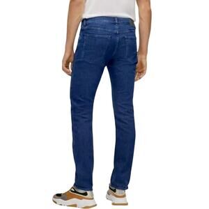 Men's Hugo Boss Maine Straight Regular Fit Stretch Dark Wash Jeans 33"W x 28"L. Regular fit. Button and zip closure with 5 Pocket stylimg straight legs. Machine washable. Item in excellent condition. No known rips, tears, holes, stains or defects. Casual, Masculine, Mature, Sexy, Date night, Night out. Retails $179