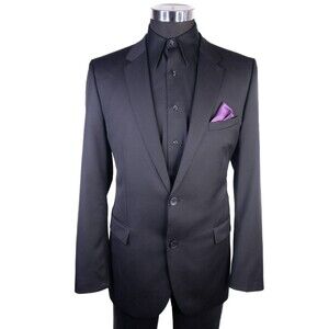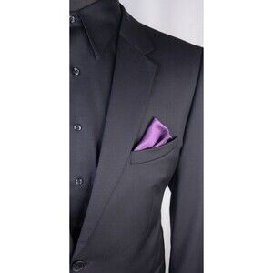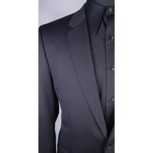 Hugo Boss Men 2 Button Blazer 44L Super 130 Wool Solid Black Coat Jacket Blazer