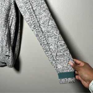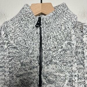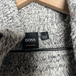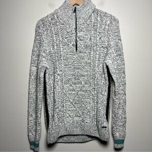 Hugo Boss Men Henley Sweater Medium Gray Cable Knit 1/4 Cotton Wool Cabin Outdoor