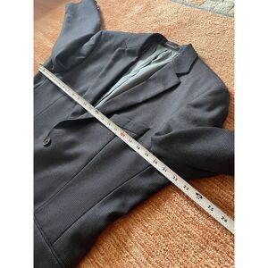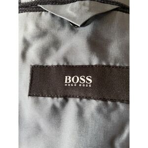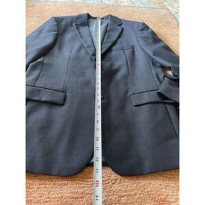 Elegant Hugo Boss men’s blazer in size 40R, made in Turkey from a luxurious cashmere-wool blend. The jacket is dark navy with a subtle textured weave, fully lined with multiple interior pockets, notch lapels, double back vents, and two-button front closure. Approximate measurements: length 31”, chest 21.5”, shoulder 18”. In excellent, like-new condition with no flaws. Perfect for business, formal, or evening wear, this premium blazer combines timeless style with exceptional quality.