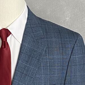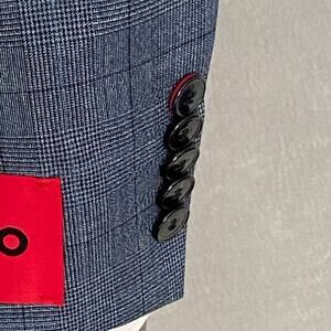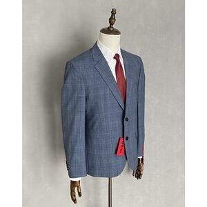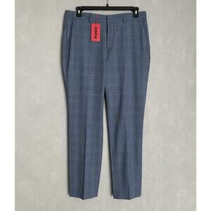 Hugo Boss Mens 40S 36W 2-Piece Suit Virgin Wool Blend Super Flex Blue Plaid NEW