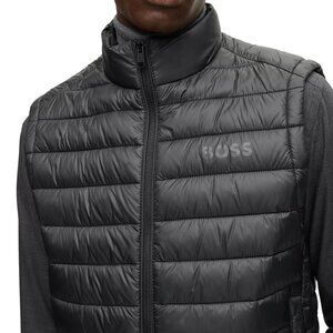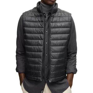 Hugo Boss Men's BOSS Calano Vest Lightweight Zip Up Quilted Puffer Pockets Black