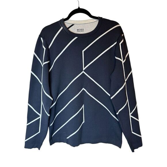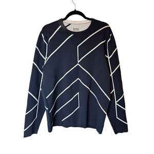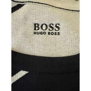 Hugo Boss Men's Black White Rone Cotton Blend Sweater Striped Logo Size M
