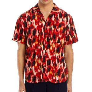 Hugo Boss Men's HUGO Ellino Abstract Camp Shirt Viscose Straight Fit Open Pink