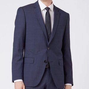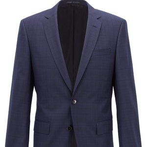 Hugo Boss Mens 'Huge6' Blue Regular Fit Wool Plaid Sport Coat Blazer 42R