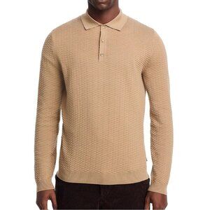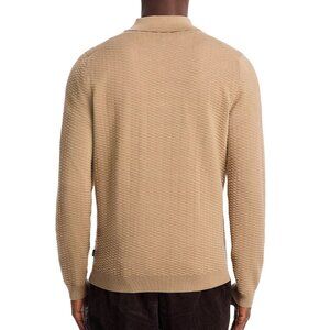 Hugo Boss Men's Long Sleeve BOSS Diluigi Textured Knit Polo Sweater Open Beige