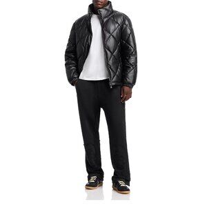 HUGO Borin diamond quilted puffer jacket featuring a coated shell for a faux leather look