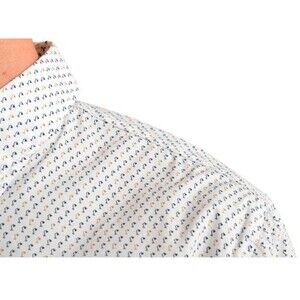This is a Hugo Boss Men's Mabsoot Slim Fit Long Sleeve Shirt in size M. It is a button-up shirt with a patterned design, featuring a button-down neckline .. The shirt is multicolor and has a slim fit style. It is brand new with tags attached.