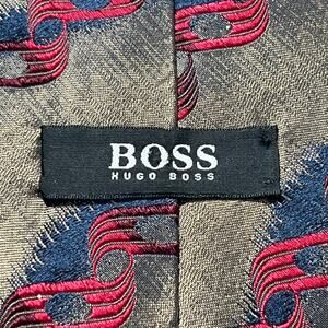 Hugo Boss Men's Made In Italy Tie Brown Red 100% Silk Striped Woven Designer Necktie