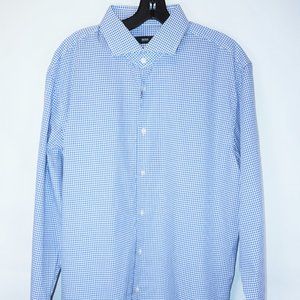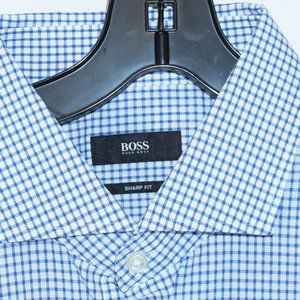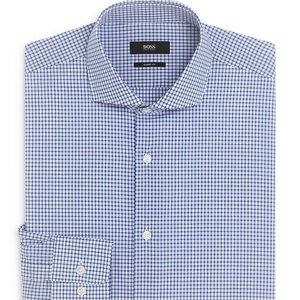 Hugo Boss Men's 'Mark' Blue Sharp Fit Gingham Textured Dress Shirt 15.5L, 34/35