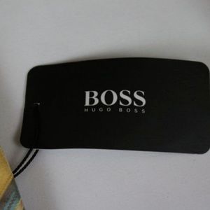 NEW Hugo Boss Men's Yellow Gold Blue Striped Silk Tie Made in Italy