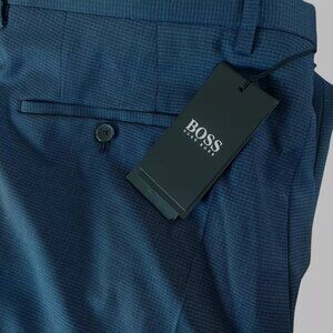 Hugo Boss Mens Pants Size 36 Blue Plaid Unhemmed Regular Fit 100% Wool Leenon1