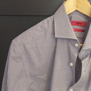Hugo Boss Men's Sharp Fit Red White Gray Plaid Shirt - M Like New