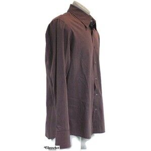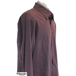 Hugo Boss Mens Shirt Mens Maroon Long Sleeve Fitted Geo mertic Sz XL