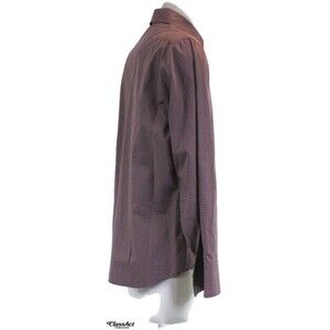 This Hugo Boss men's shirt features a stylish maroon color with a geometric pattern, making it a classic and designer piece perfect for casual occasions. The shirt has a slim fit with long sleeves and a collared neckline with a spread collar style. Made from cotton fabric, it offers easy care and is suitable for all seasons. The shirt is adorned with button accents and is labeled as size XL, catering to regular size men.