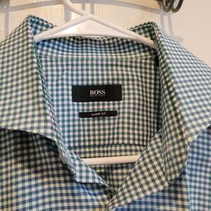 This Hugo Boss shirt was only worn 2x and then dry cleaned. It is in perfect condition and smoke-free!