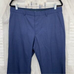 Hugo Boss Mens Size 40 Reg Blue Plaid Dress Pants Flat Front Unhemmed *FLAW*
