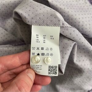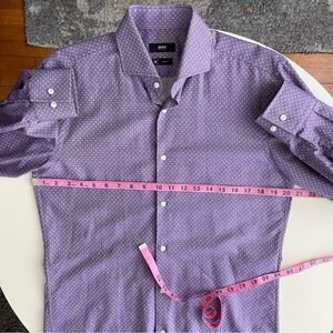 Hugo Boss Men’s Slim Fit Geometric Print Dress Shirt Purple Neck 15.5”