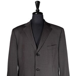 Hugo Boss Mens Suit 2 Piece Gray Pink Striped Wool Blazer Jacket 42S Pants 36x30