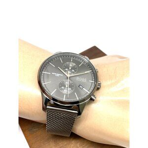 Hugo Boss Men's Watch 1513870 Quartz Chronograph Gray Dial Gunmetal Mesh Steel $395 (H11285)