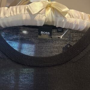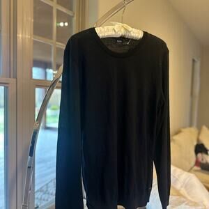 Hugo Boss Mens XL Sweater Black Merino Wool Knit Lightweight Crewneck