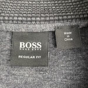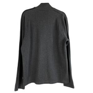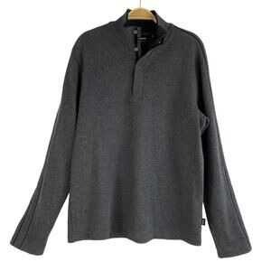 Hugo Boss Mock Neck Sweater Men L Gray Snap Collar Cotton Preppy Striped Sleeve