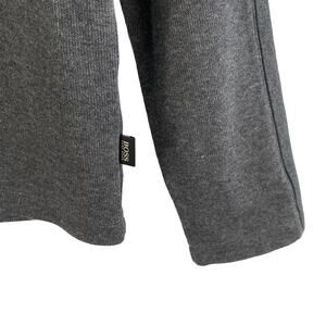 Hugo Boss Men's Mock Neck Sweater in dark gray color with stripes on sleeve.