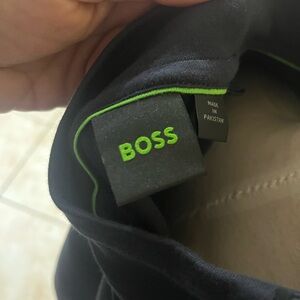 Sleek and sporty Hugo Boss pullover in deep navy, featuring a clean half-zip front and subtle logo embroidery. The raglan sleeves have stylish ribbed detailing, and the neon green piping under the collar adds a pop of edge. Crafted in smooth, breathable fabric, this size L piece is pre-loved and in excellent condition