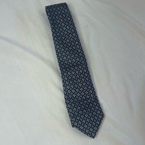Hugo Boss Neck Tie 100% Silk Italy Navy Blue White Floral Print