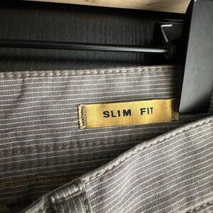 Men’s 34x31 grey chino pants with slim straight fit and prep designer style.