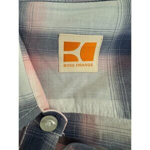 Hugo Boss Orange Label Pink Plaid Button Up Long Sleeve Cotton Shirt Men Size XL