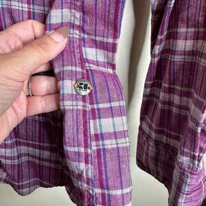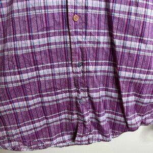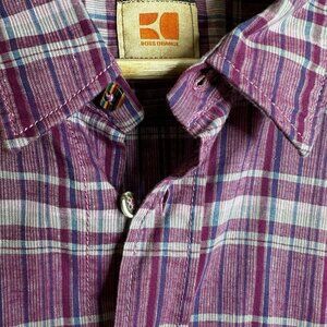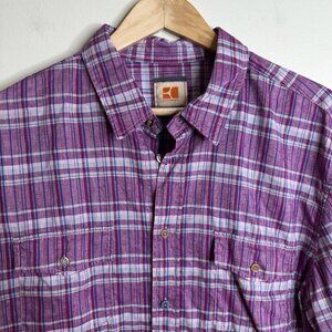 Hugo Boss Orange Linen Blend Plaid Button Up Shirt Purple Mens XL Western Preppy