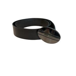 Hugo Boss Oval Buckle Leather Belt 35” To 39” Black Adjustable Preowned