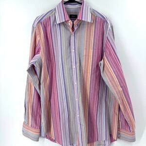 Hugo Boss Pink and Blue Casual Button Down Shirt