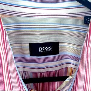This Hugo Boss shirt features a stylish blend of pink and blue hues, perfect for a casual yet sophisticated look. Crafted from lightweight fabric, it offers comfort and versatility for any occasion. The classic button-down design makes it an ideal choice for relaxed outings or smart-casual events.