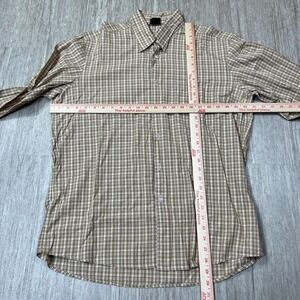 Hugo Boss Plaid Button Up Long Sleeve Shirt Men's Large Brown Beige Red