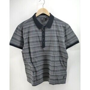 Hugo Boss Polo Golf Shirt Mens Size L Regular‎ Fit Black Striped metal 5 buttons