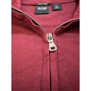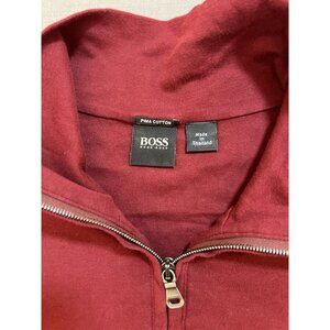 Hugo Boss Polo Shirt Mens Adult L Red 1/4 Zip Pima Cotton Long Sleeve.